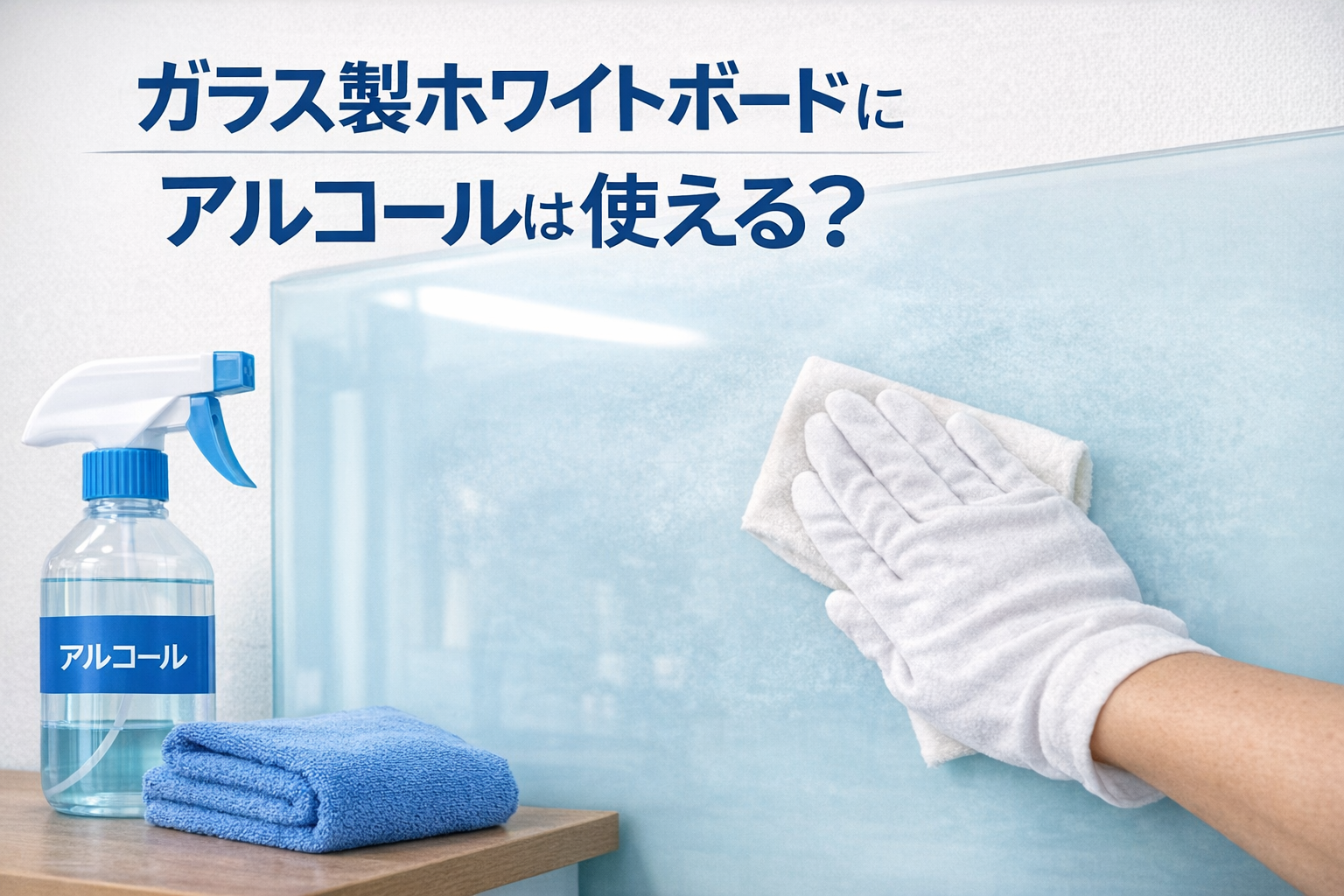 ガラス製ホワイトボードは、見た目がきれいで清潔感もあり、オフィスや店舗でも人気があります。ただ、使い方によっては「うっすら跡が残る」「拭いてもムラになる」「きれいに消えない」といった悩みが出てきます。そんなときに候補に上がるのがアルコール拭きですが、使い方を間違えると、汚れを広げてしまったり、周辺の素材に影響が出たりすることもあります。